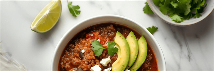 Hearty smoky vegetarian chilli with quinoa and black beans high in protein and fibre and perfect as a warming one pot dinner.