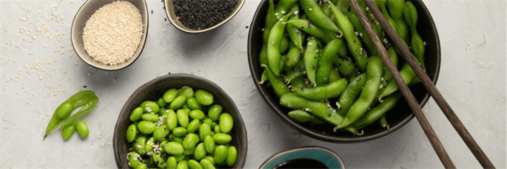 Fresh protein rich edamame beans tossed with soy sauce and lime a quick healthy vegan snack that is high in fibre and ready in minutes.