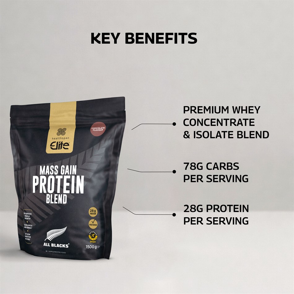 As we age, maintaining muscle and strength becomes increasingly important, not just for athletic performance, but for overall health and mobility. If you’re looking to build muscle, gain strength, or fuel an active lifestyle, Elite All Blacks Mass Gain Protein Blend delivers a powerful 461kcal per serving, packed with 28g protein from a premium whey concentrate and isolate blend, plus 78g of complex carbohydrates for sustained energy and recovery.