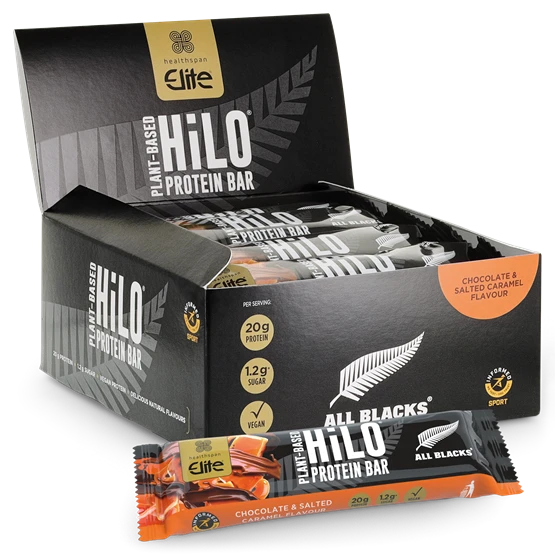 All Blacks Plant−Based HiLo® Protein Bar − Chocolate and Salted Caramel Flavour