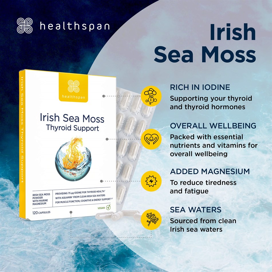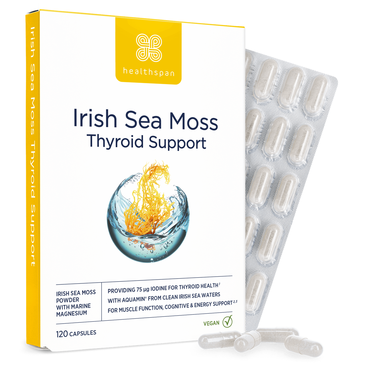Irish sea moss, also known by its Latin name, Chondrus crispus, is a nutrient-rich seaweed that grows along the Atlantic coasts of Europe and North America – particularly in Ireland, the UK and parts of Canada. Sea moss helps to support normal thyroid function as it’s naturally high in iodine, which is an essential nutrient in the production of thyroid hormones.