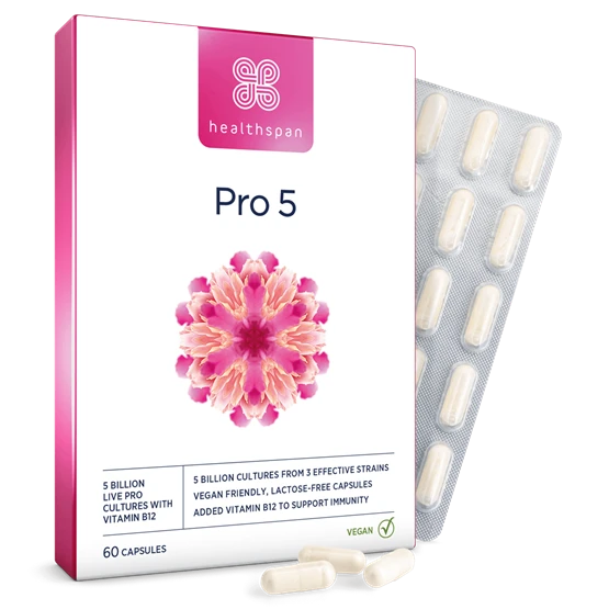 Unlike many live culture products, Probiotic 5 Billion is lactose-free, making it suitable for those who have a reduced ability to digest products containing cow's milk. What's more, our vegan capsules contain tough bacteria strains that have a long shelf life. Finally, vitamin B12 has been added for its benefits to supporting your immune health, and also has proven benefits in reducing tiredness and fatigue and normal energy-yielding metabolism.