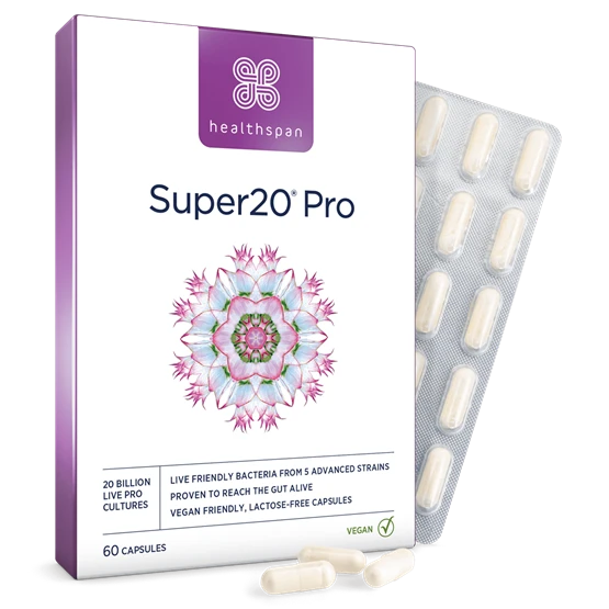 Super20® Probiotic delivers a carefully curated blend of five premium probiotic strains all naturally found in the human gut, in a high-strength formula that guarantees 20 billion live bacteria reach your gut alive. Unlike many live culture products, Super20® Probiotic also is lactose-free, making it suitable for 65 % of adults worldwide who have a reduced ability to digest products containing cow's milk. These tough live bacteria strains have a long shelf life, so you don't need to store it in the fridge either.